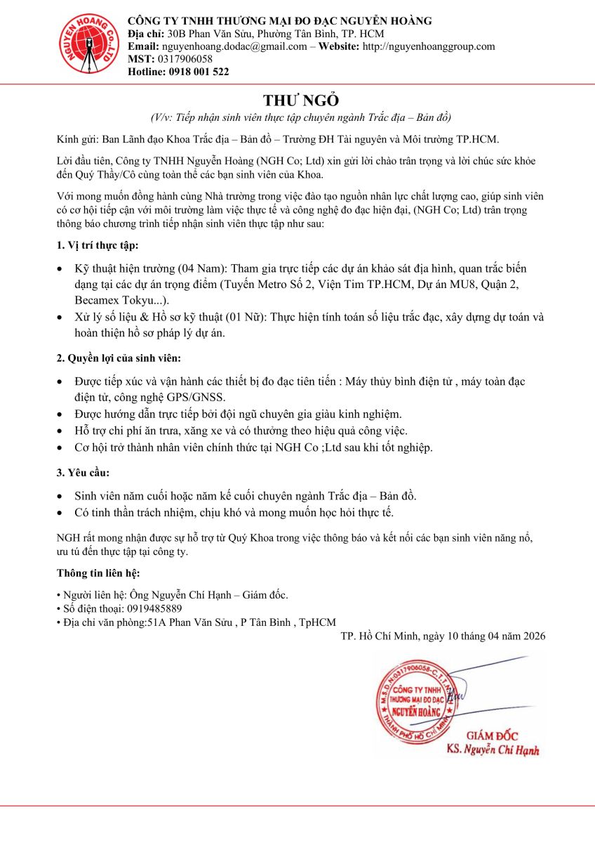 Công ty TNHH Nguyễn Hoàng tuyển sinh viên thực tập