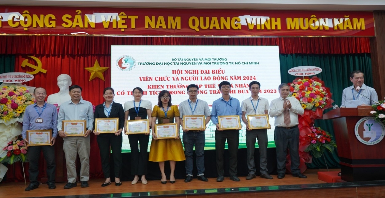 Trong không khí vui mừng của năm mới, ngày 06.01.2024 tại Hội trường A, Trường Đại học Tài nguyên và Môi trường TP. HCM đã tổ chức “Hội nghị Đại biểu Viên chức và Người lao động năm 2024”. Hội nghị nhằm đánh giá những thành tích đạt được trong công tác quản lý, giảng dạy, học tập và nghiên cứu khoa học và xây dựng Nhà trường trong năm 2023, đồng thời xây dựng kế hoạch, biện pháp thực hiện nhiệm vụ, chương trình công tác của Trường trong năm 2024.